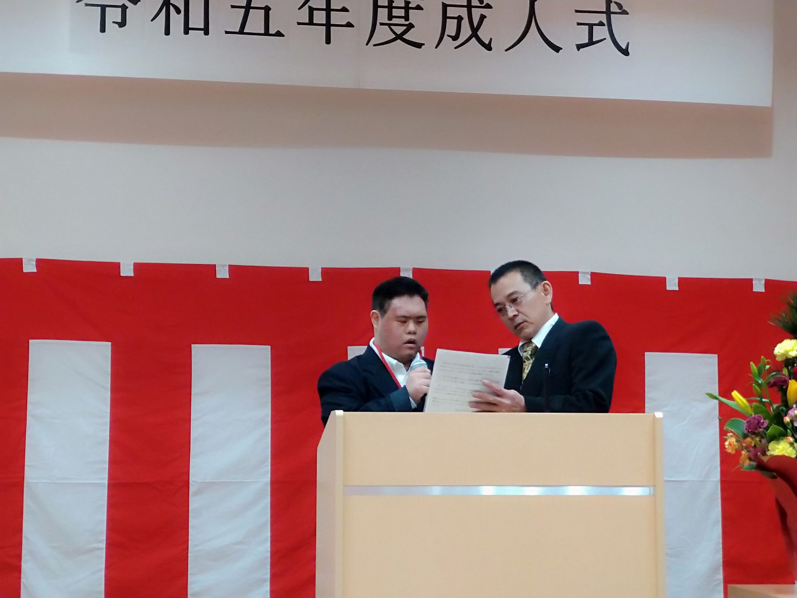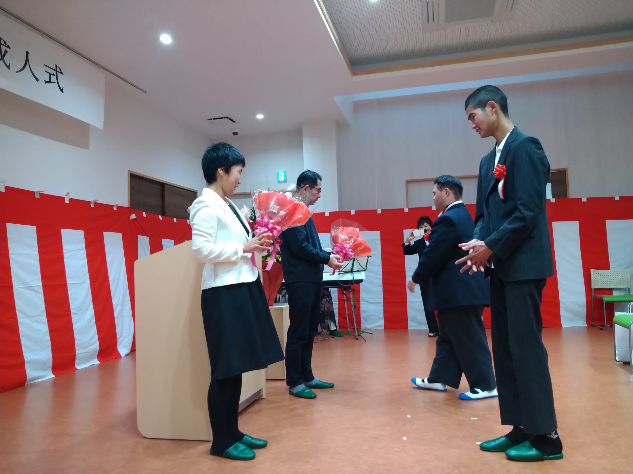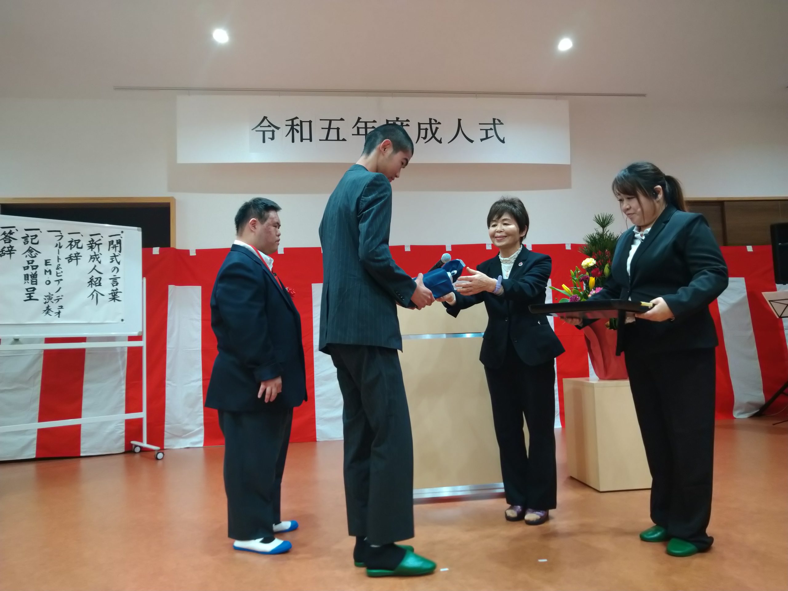 1月9日(土)に成人式を開催しました。今年成人を迎えられたのは2名の方で、式典には職員・利用者様が33名参加。成人式準備の為、担当の職員を中心に昨年夏頃より準備を開始し、企画を進めてきました。式典ではメモリアルDVD上映にて当時を懐かしむ様子が伺えたり、保護者様からの手紙披露にて参加者が涙する等、とても良い式典になったのではないかと感じています。新型コロナウイルスの蔓延や自然災害等、このような状況下でも諦めず逆境に立ち向かってきた新成人2名は、この先どのような困難が待ち受けようと、きっと乗り越えていけるだろうと思います。本当におめでとうございます。