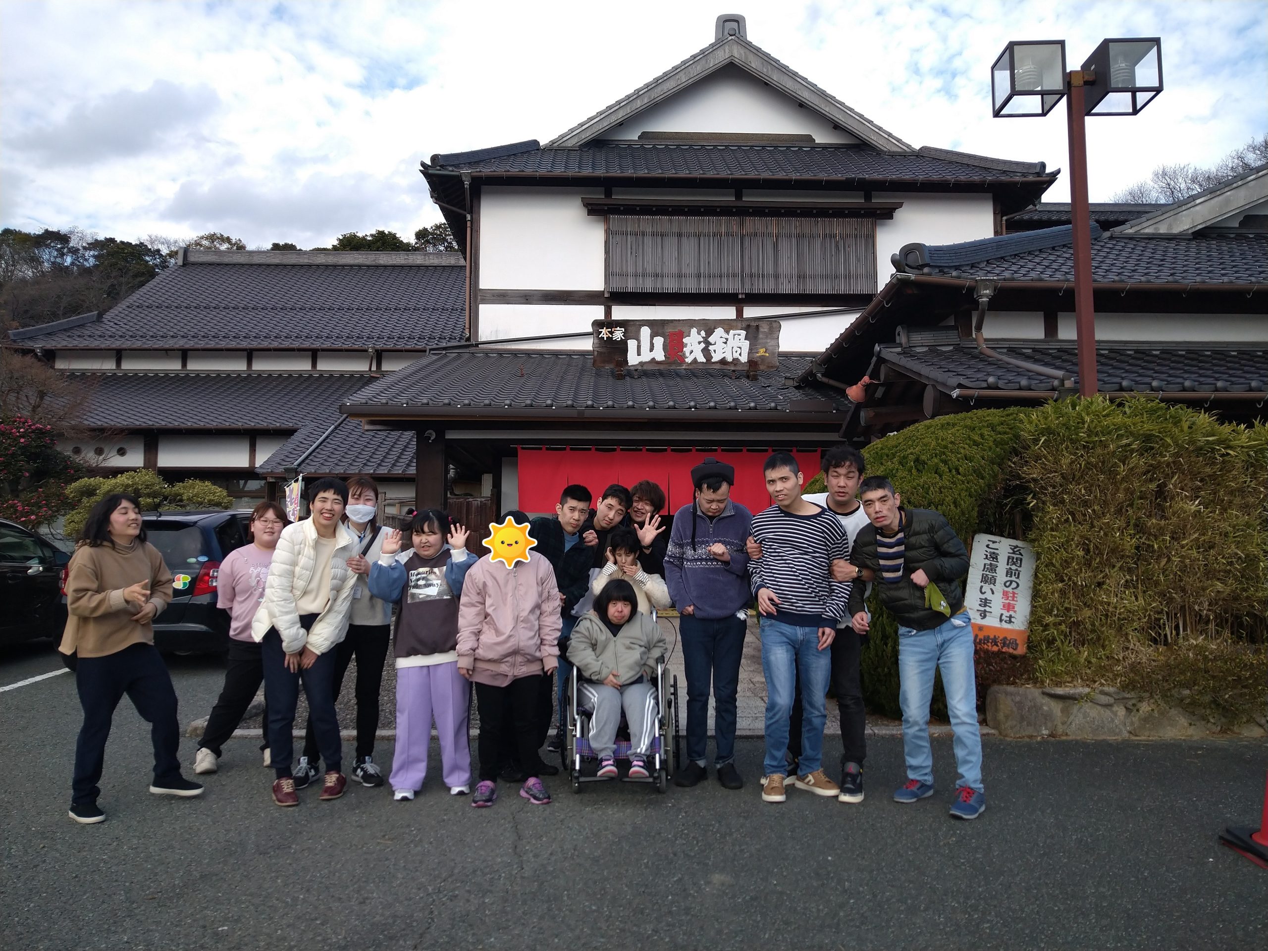 つばさ学園 創作訓練班 新年会 2024.01.17 1月17日(水)山賊鍋飯塚にて創作訓練班新年会を行いました。学園ではなかなかお目にかかれない鍋料理に皆さんとても興奮され、日々見せる事の無い表情や笑顔をたくさん見る事が出来ました!(^^)! 現在、創作訓練班では、園内に飾る掲示物の作成や運動機能向上を目的とした取り組み、生活に必要不可欠な動作の訓練等、様々な事に日々励んでいます。今年も皆が笑顔で楽しく活動に取り組めるよう、私たち職員一同もより努力し、精進していきたいと思います。 ~セカンド新年会 in やますい~ 前の記事 ~セカンド理美容~ 次の記事