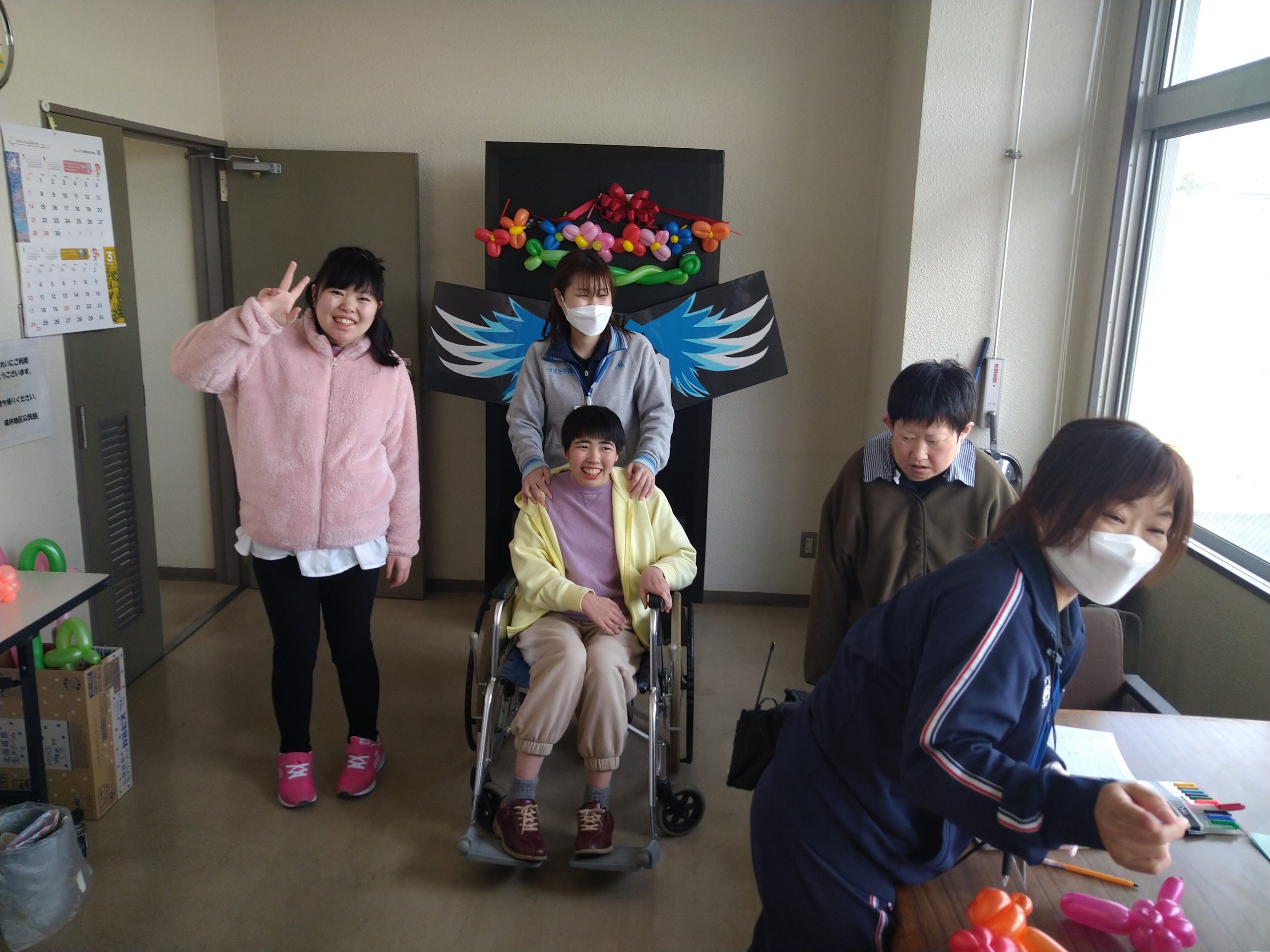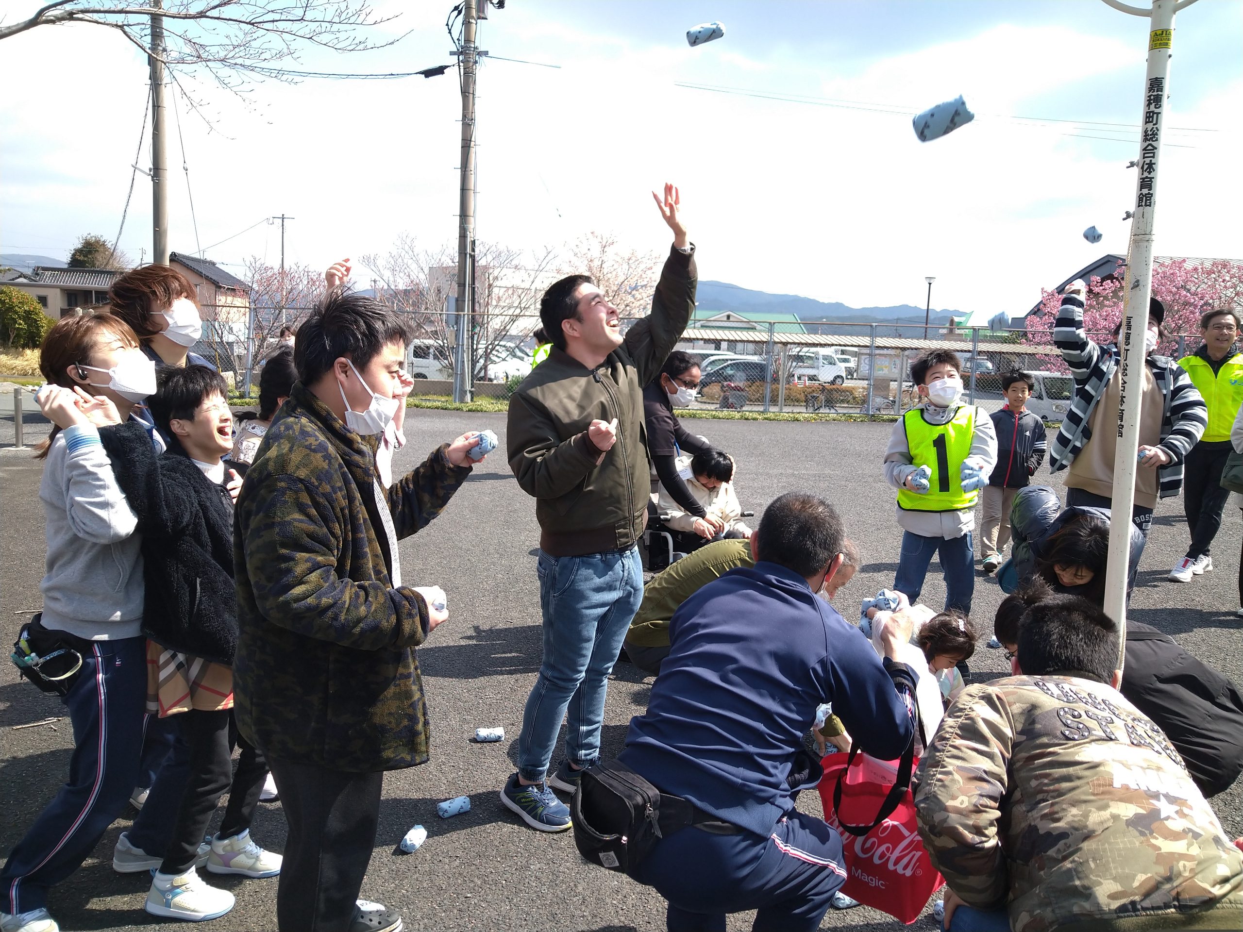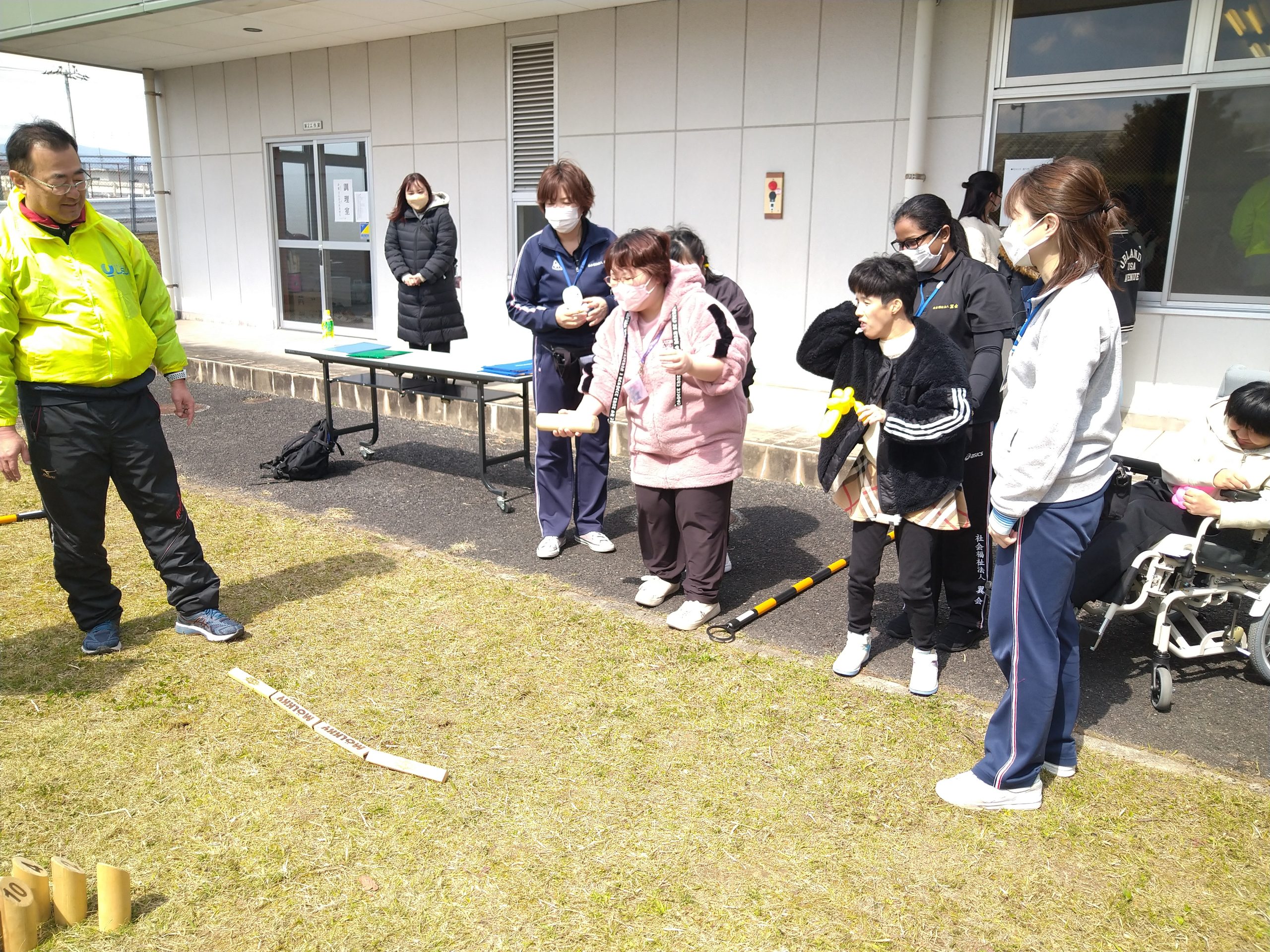 つばさ学園 さくらフェスタ 2024.03.24 3/20(水)碓井地区公民館にて開催された、さくらフェスタに出掛けました。つばさ学園の付近で開催であった為、午前・午後と3便に分かれて入所者様40名全員に参加して頂きました。天候にも恵まれ、開会式の玉入れからスタート!!わなげやバルーンアート、モルック等を楽しんだ後は、お待ちかねのお食事タイム(#^.^#)焼きそばやフライドポテト、フランクフルト、ジュース等を購入され、とても楽しい時間となりました。 3月 セカンドカラオケクラブ 前の記事 通所利用者様の外食 次の記事