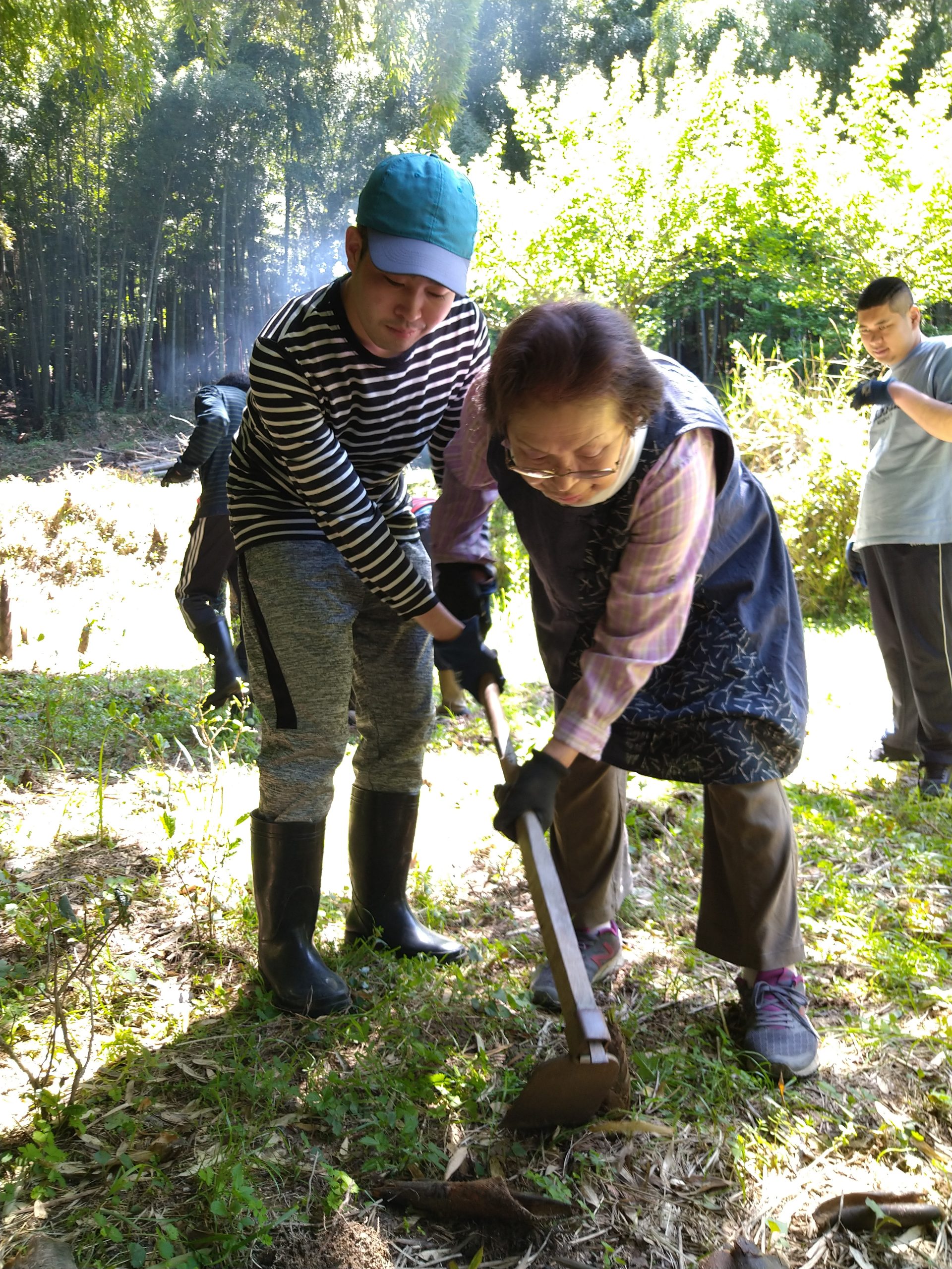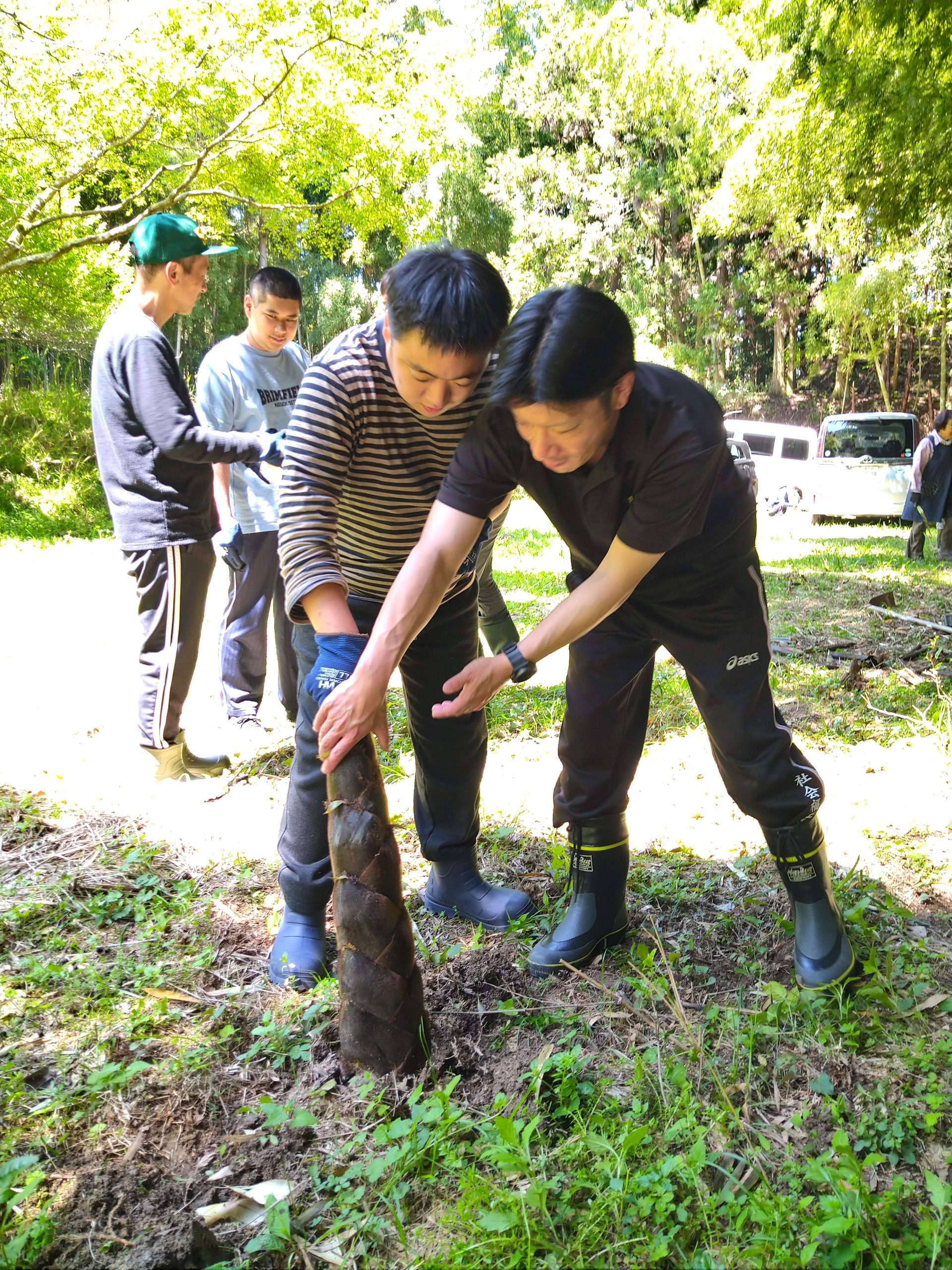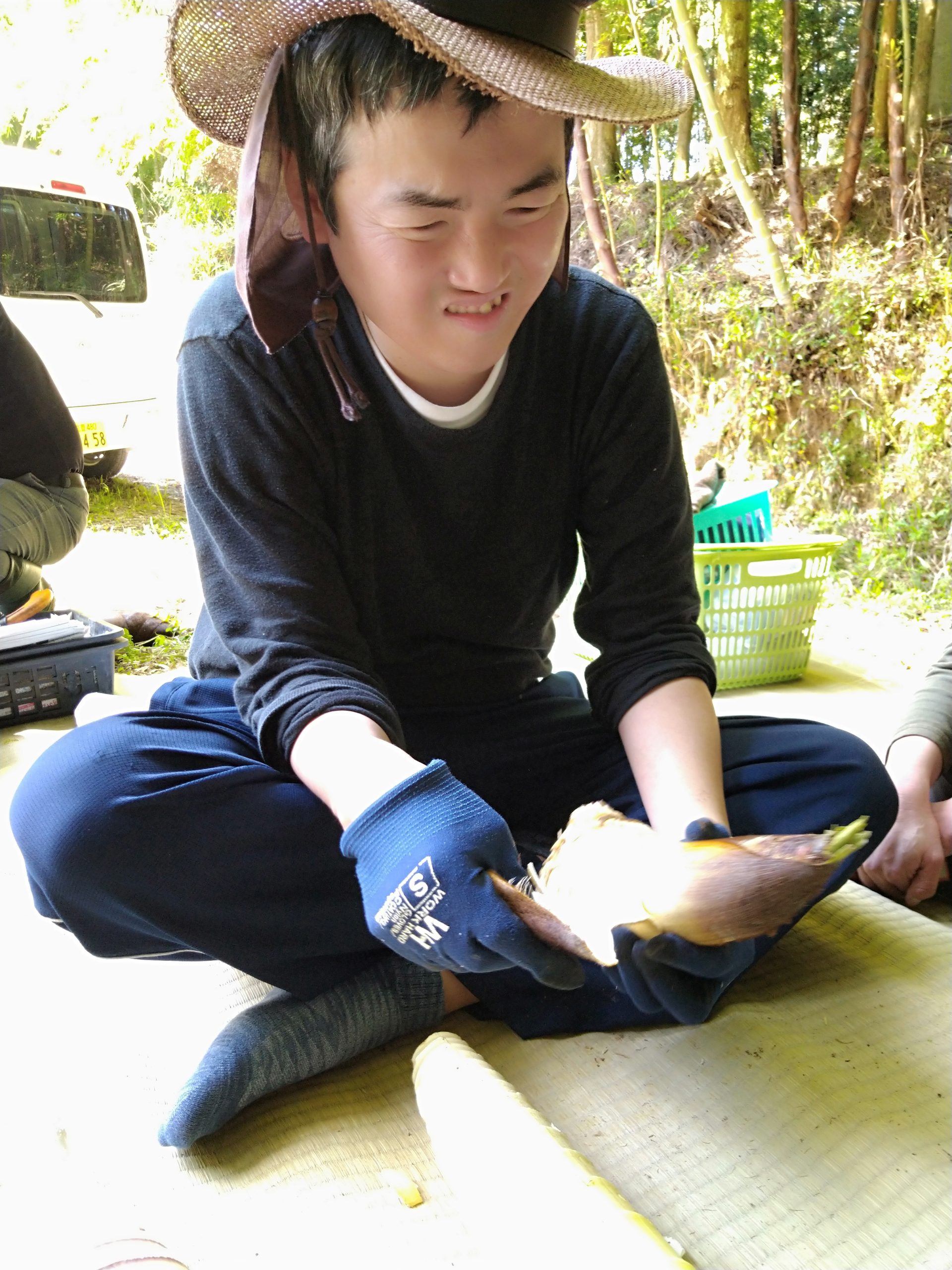 4月25日(木)午後より、グリーンエコ班にてタケノコ掘り体験に出掛けました。行き先は”嘉麻市大力”!短いドライブを楽しみつつ10分ほどで到着しました。到着後は竹林に見とれながら奥へ奥へ…降りてみると、すぐ足元に大量のタケノコが!!!(〇□〇;)!!!!!利用者の皆さんは笑顔で走り出し、タケノコを手で触ってみる方、手で折ろうとしたり…職員が鍬を使っている姿を見て、鍬を使ってみようとチャレンジする方もいました。使い方が難しい為、一緒に掘ったり、掘ったタケノコを籠まで運んだりと、みなさんそれぞれ楽しみながら参加されていました。その後はシートの上でゆっくり皮むきにもチャレンジしたり、森林浴を楽しんだり…。1時間程と短い時間ではありましたが、とても貴重な体験となりました。ありがとうございました。
