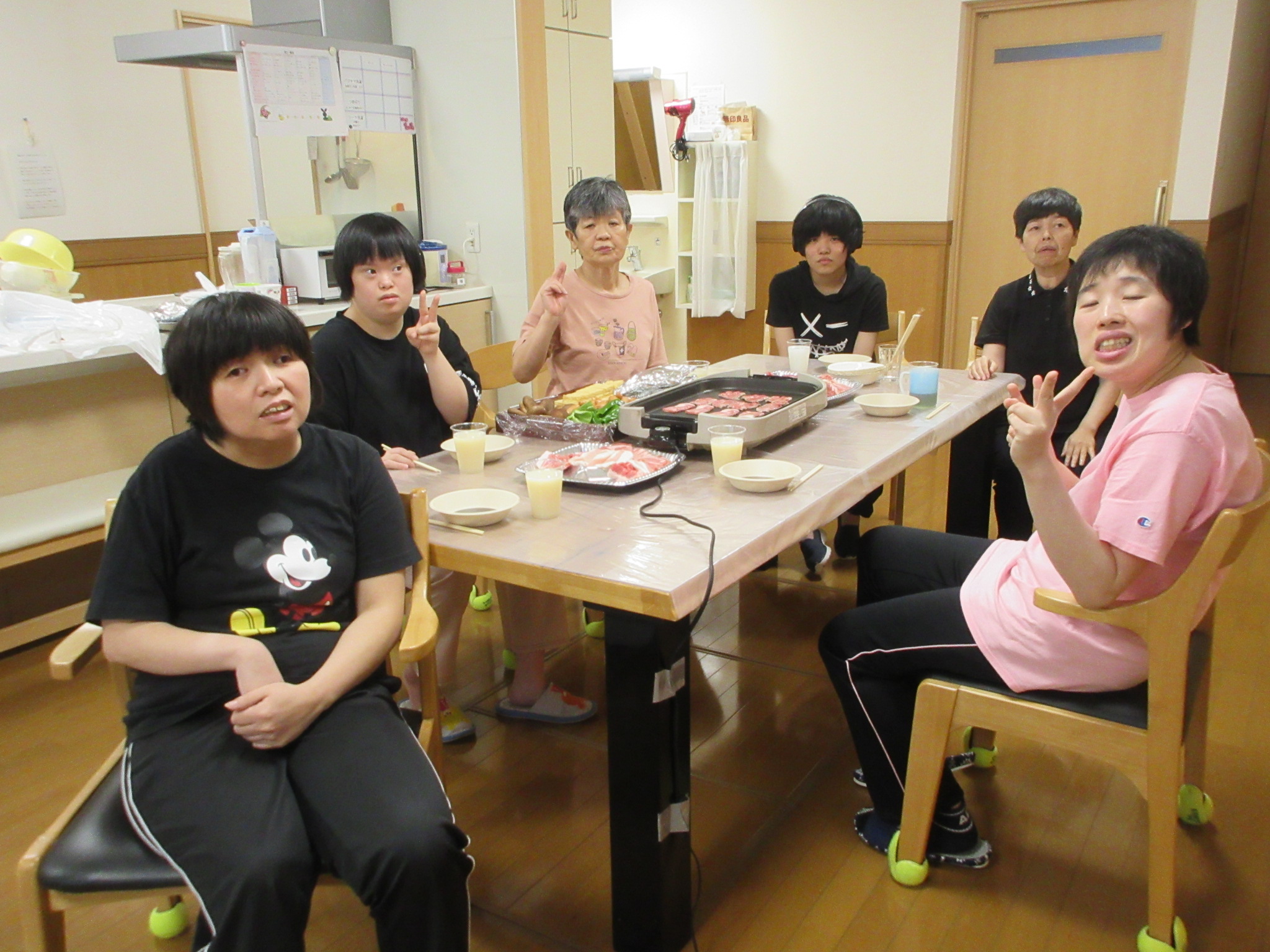 グループホーム グループホーム 焼肉会 2024.08.05 6月に各ホームにて焼肉をしました。メニューや場所は、利用者さんのリクエスト!!お肉に魚介類にデザートまでお腹いっぱいに食べました。やっぱりお肉は最高っっっ(*^^)v グループホーム ウイング外出 前の記事 8月フラワーアレンジメント 次の記事