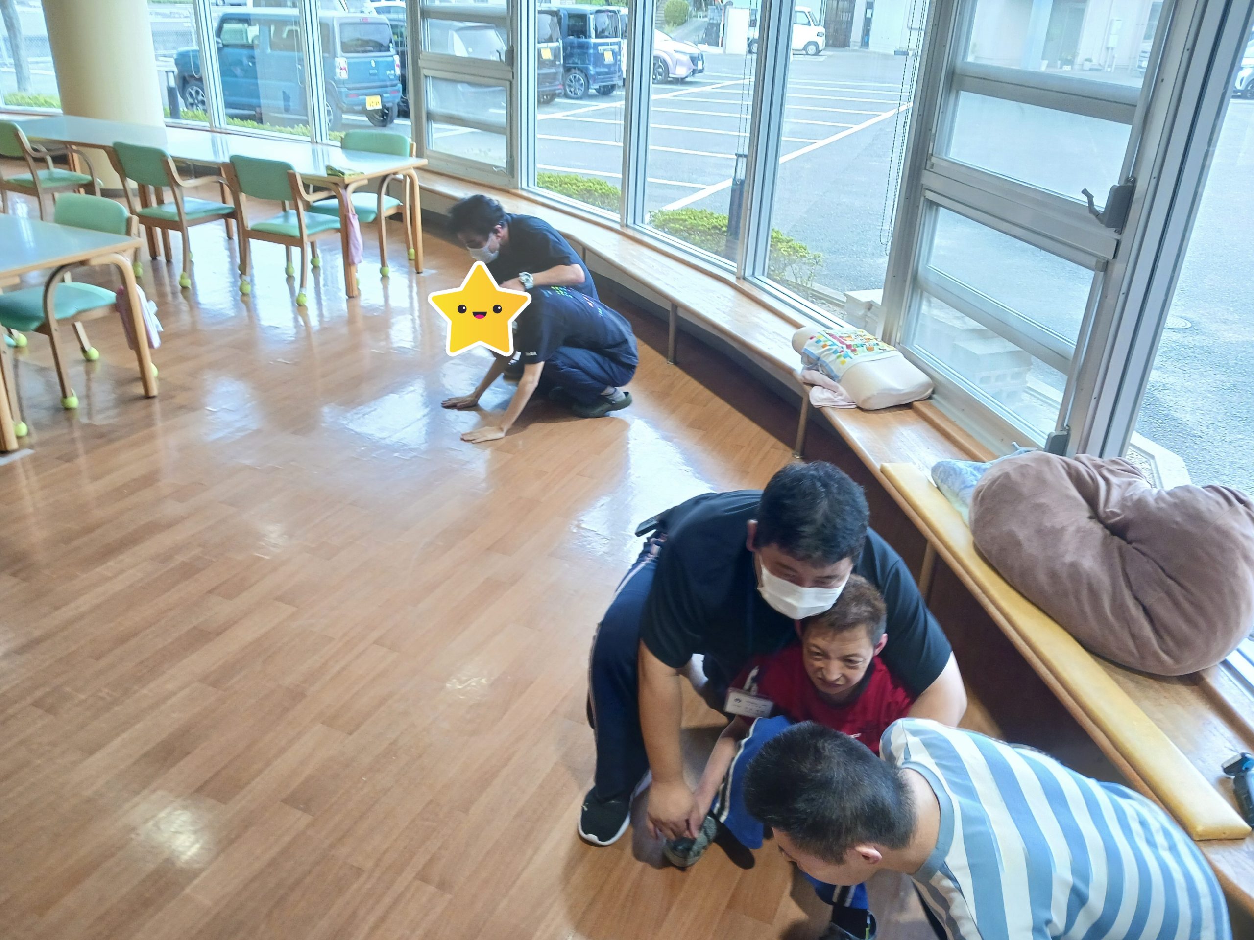 つばさ学園 避難訓練 2024.09.26 9月25日(水)嘉麻事業所にて地震想定の避難訓練を行いました。日々の訓練の甲斐あってか、防災ベルの音が聞こえると皆さんすぐに園庭に避難開始。もちろん支援者も一生懸命に呼びかけましたが、ほとんどの方が自身で行動されている姿に、日々の訓練の成果を感じました。又、最近は自然災害が各所で多発していますので、避難用具などもですが、備える事の大切さも改めて認識する機会となりました。 9月 セカンドつばさ カラオケクラブ 前の記事 9月 セカンドつばさ 音楽療法 次の記事
