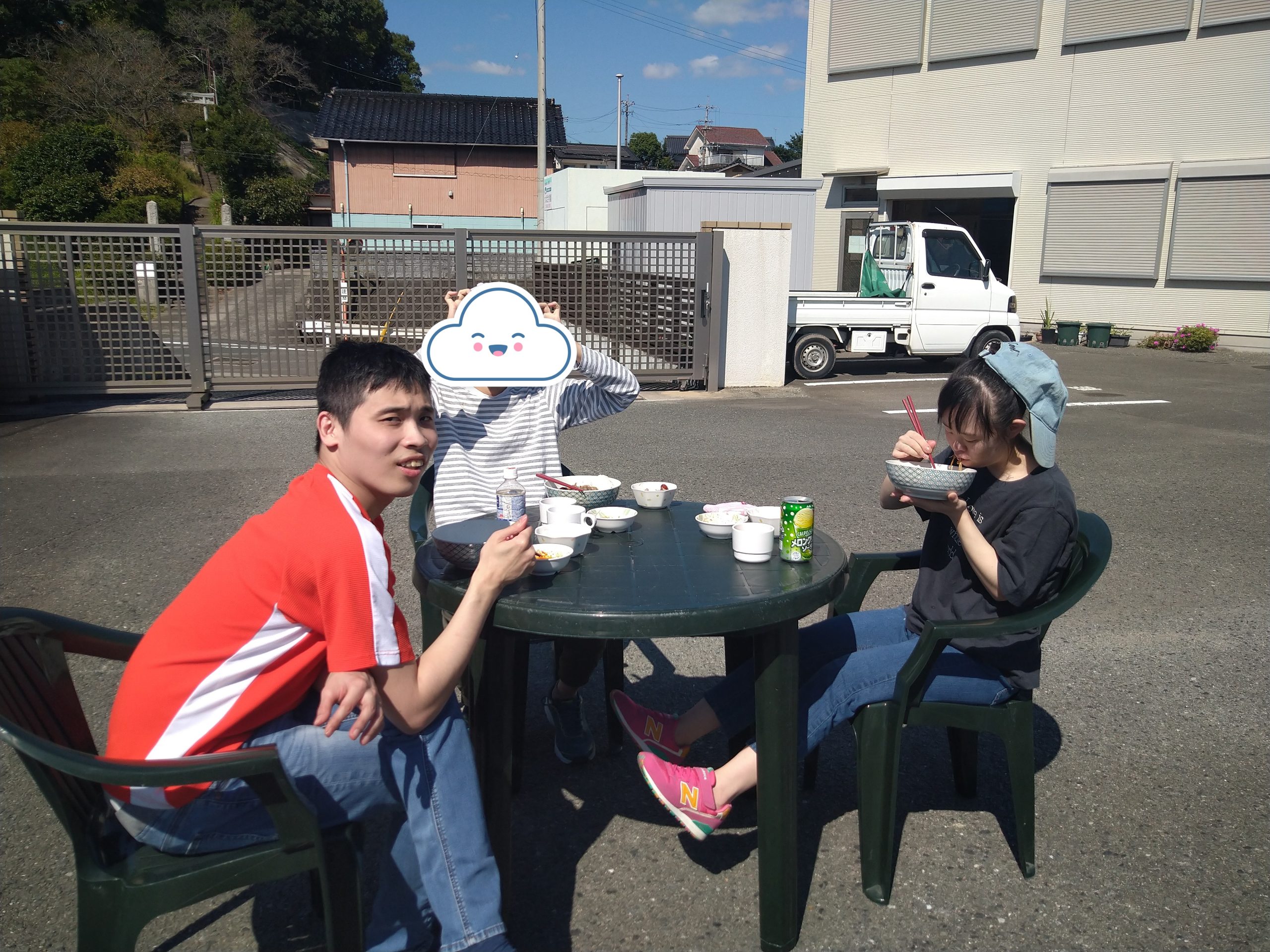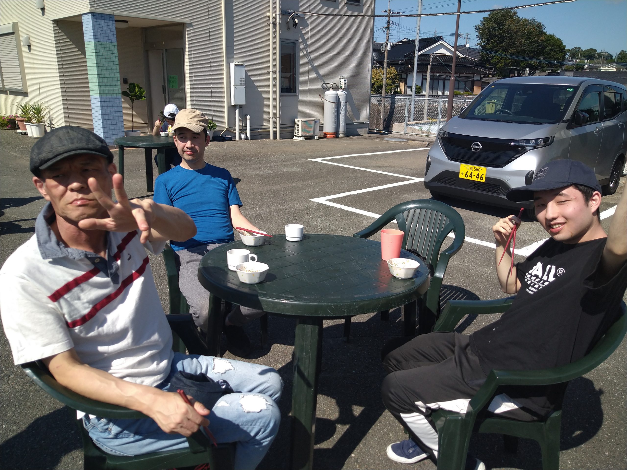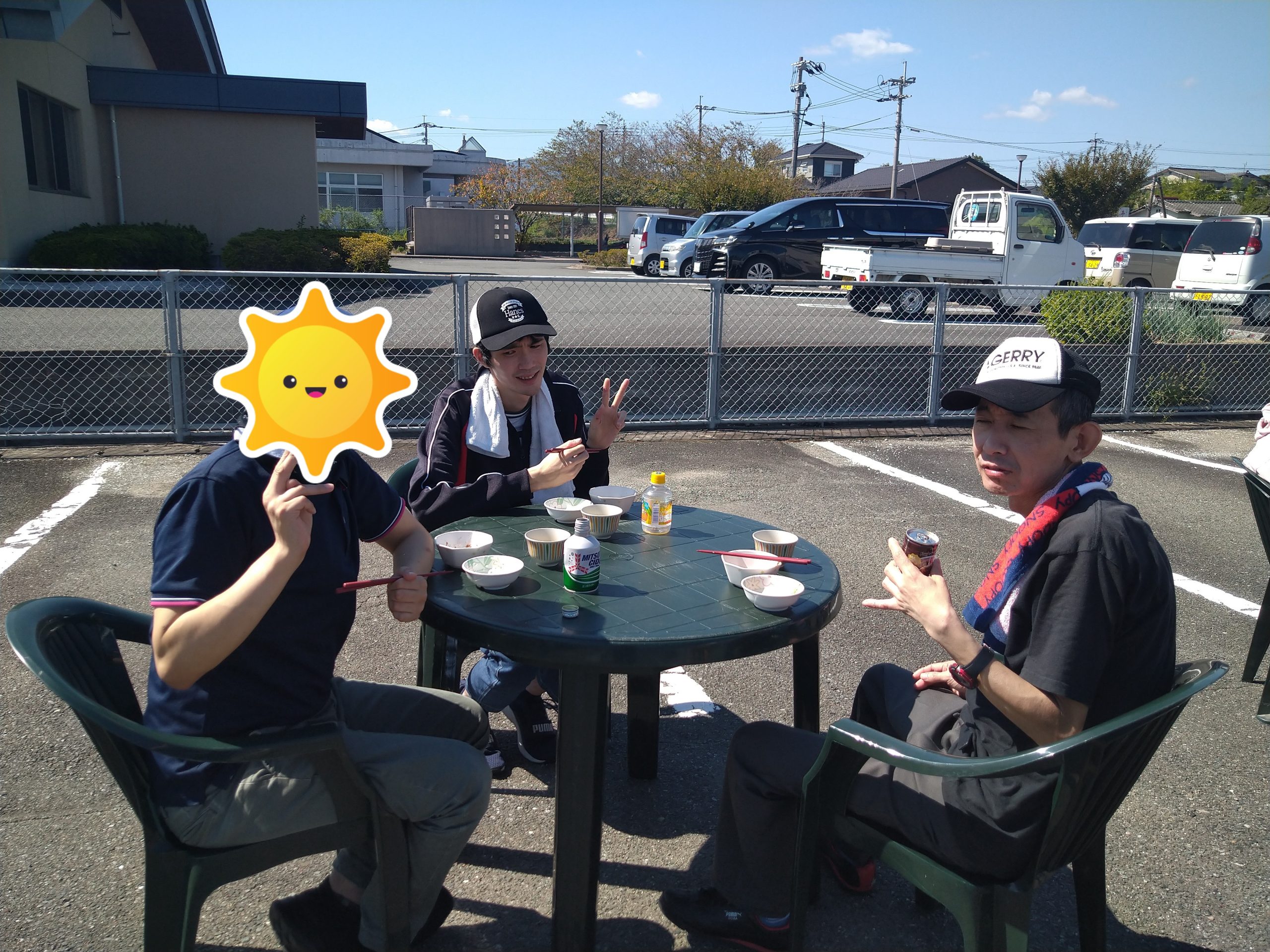 10月11日(金)嘉麻事業所園庭にてバーベキュー大会を開催しました。当日は、皆さんや職員の日頃の行いを見て頂けているのか。。。雲一つ無い晴天( *´艸`)朝食後より園庭にて準備している職員を見てソワソワ♬待ちきれずに手伝いに出て来られる方も沢山居ました。準備が完了し、バーベキュー開始!たくさんのお肉や焼きおにぎり、焼きそばに野菜、事前に購入されたジュースを堪能され、大満足の一日となりました(#^^#)