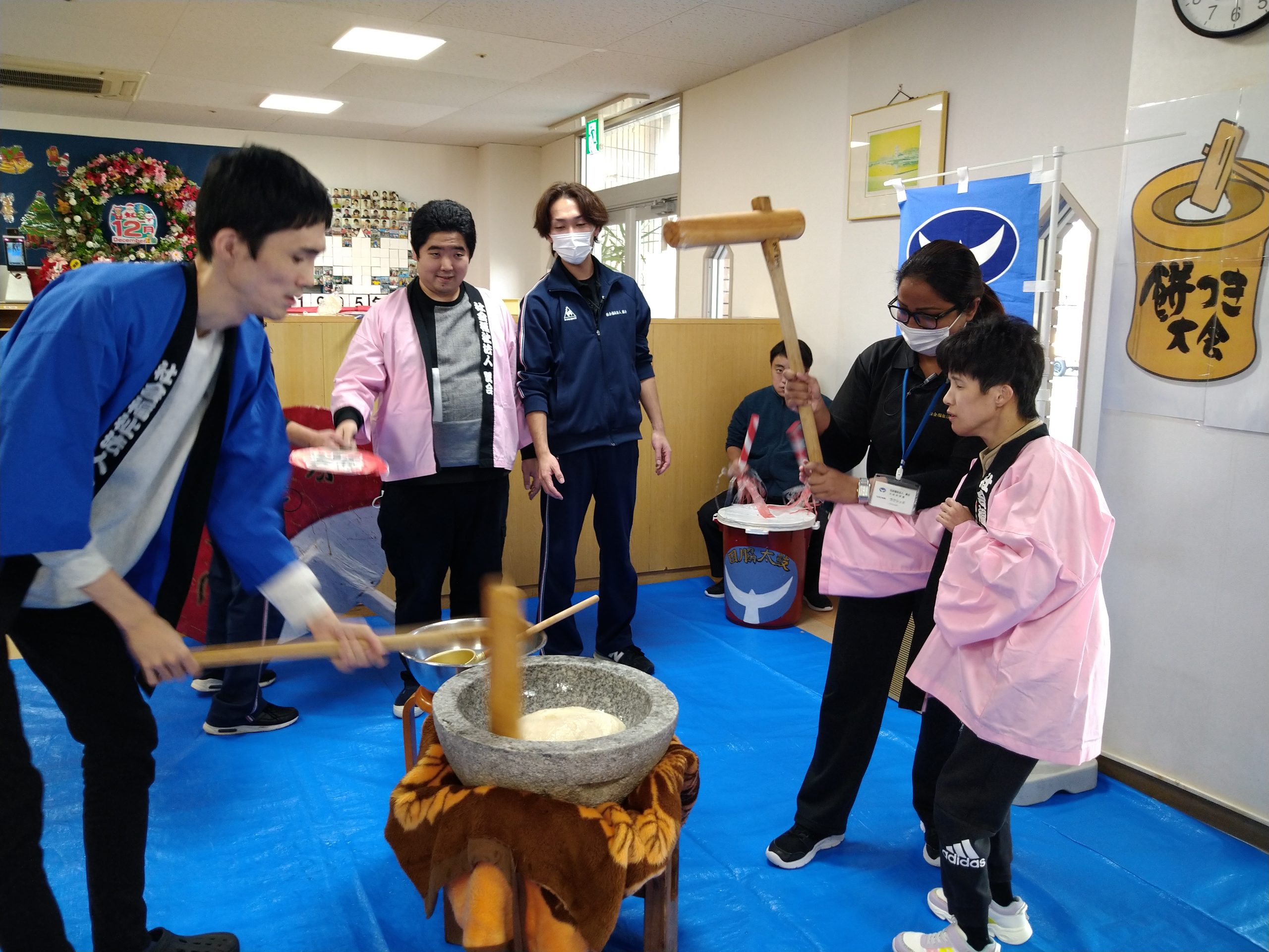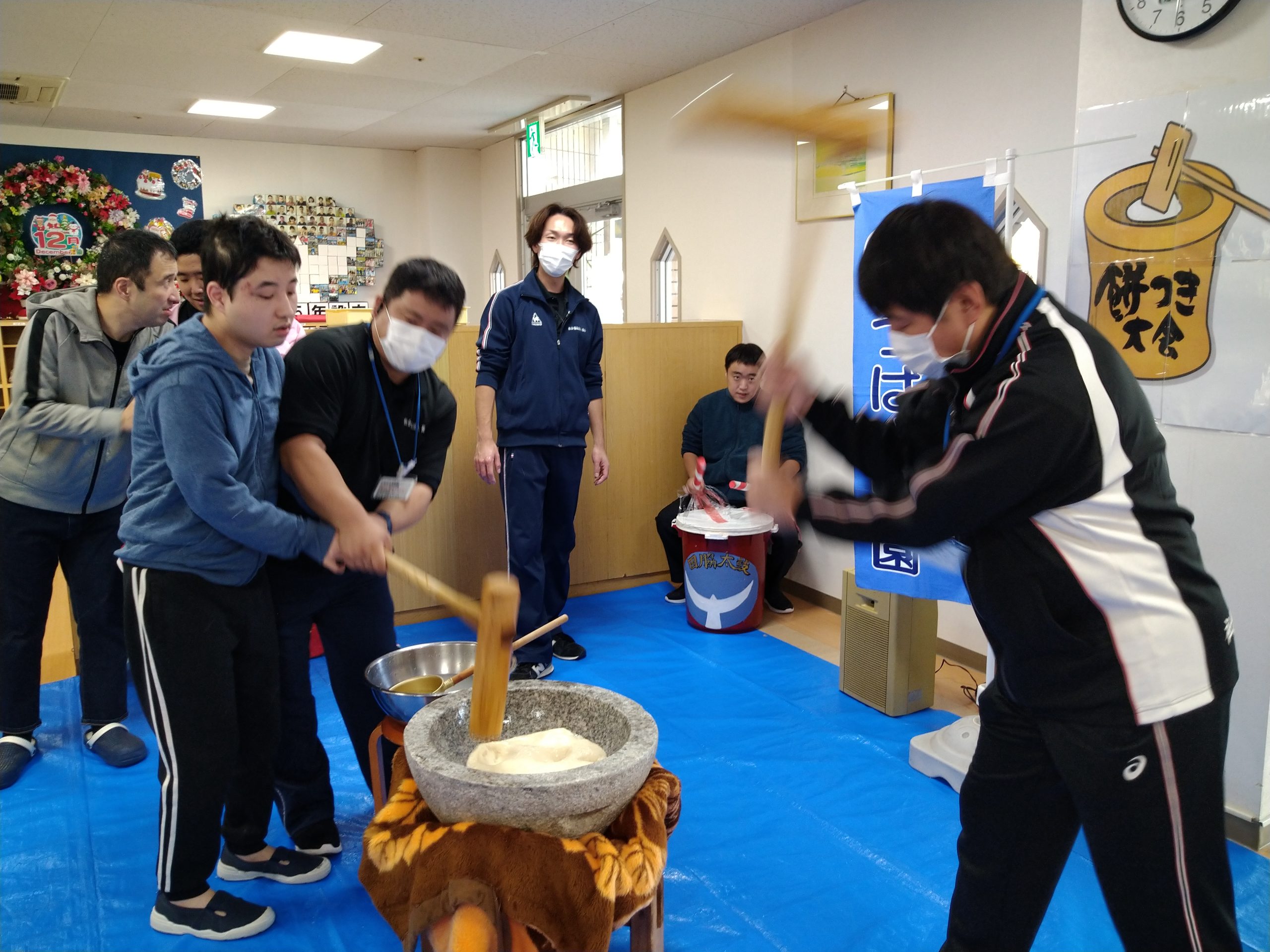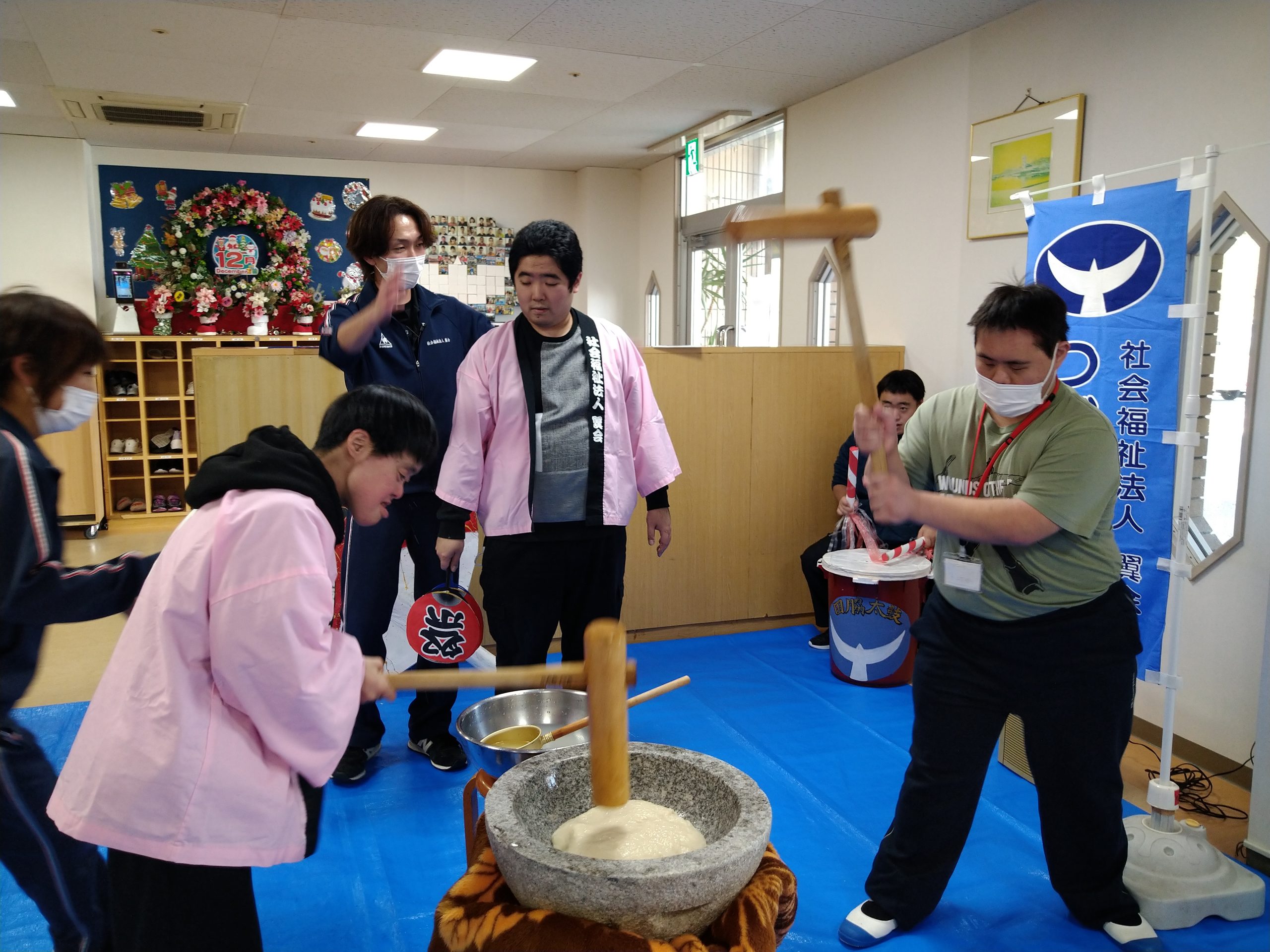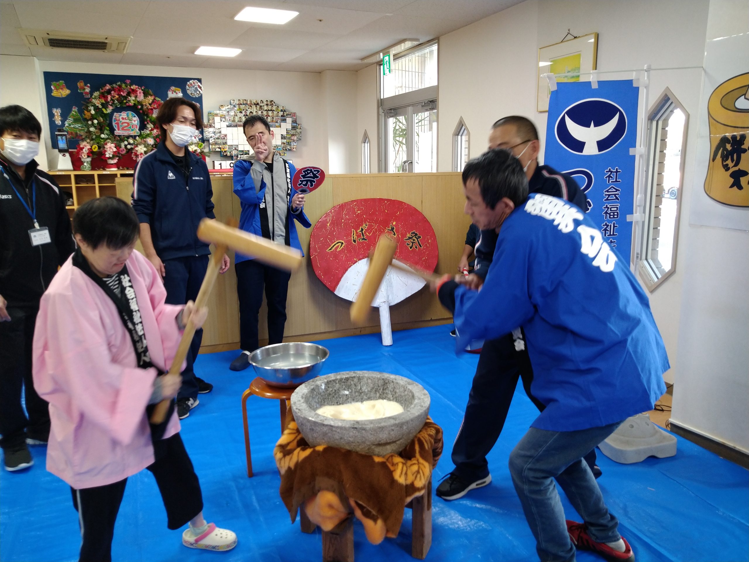 12月7日(土)毎年恒例の餅つき会を開催しました(#^.^#)皆さん大きな声を出しながら力いっぱいにお餅をついて、大盛り上がり♬ついたお餅は厨房よりすぐに調理して頂き、美味しいきな粉餅を頂きました。来年も良い年となりますように( `ー´)ノ