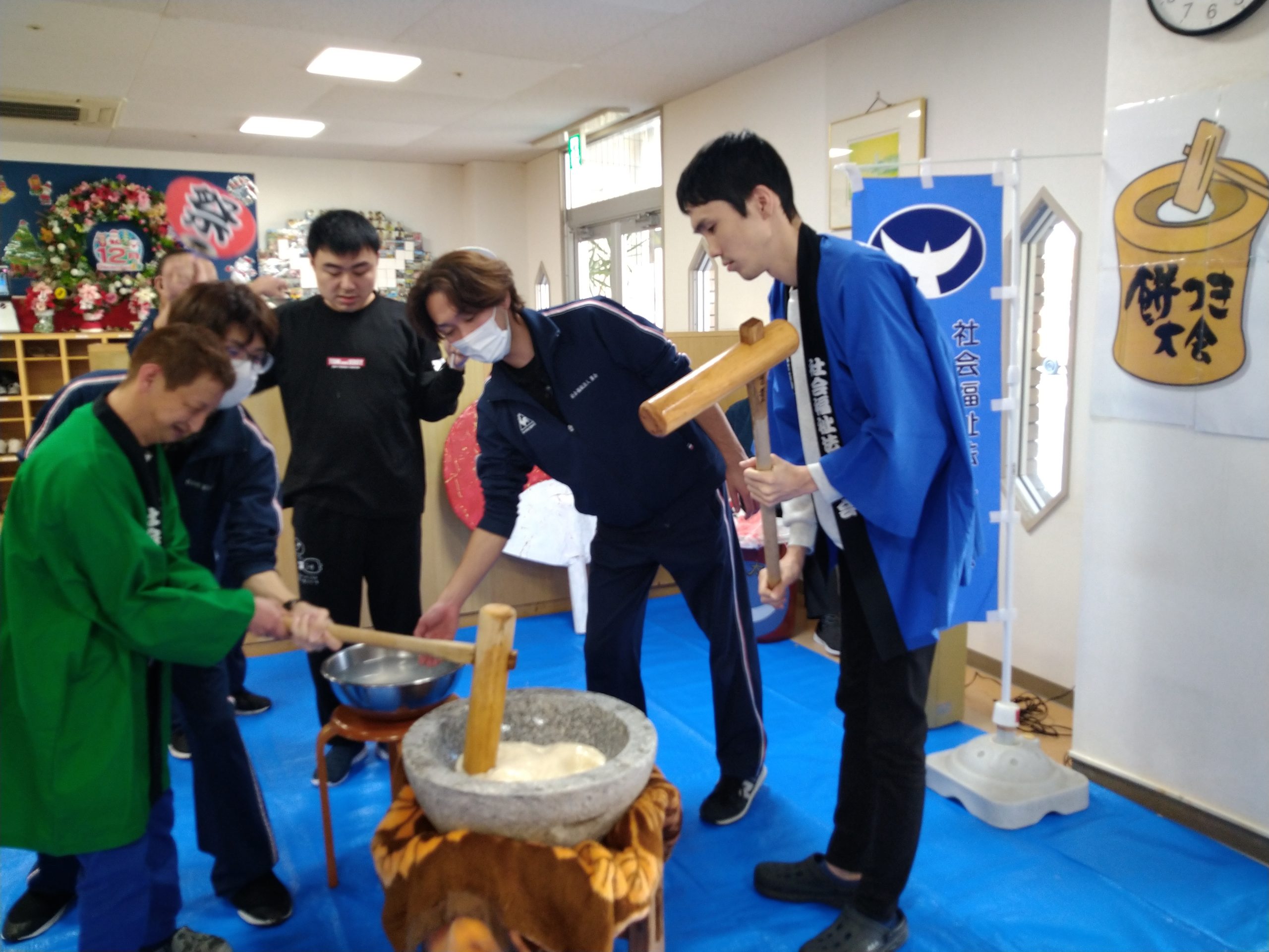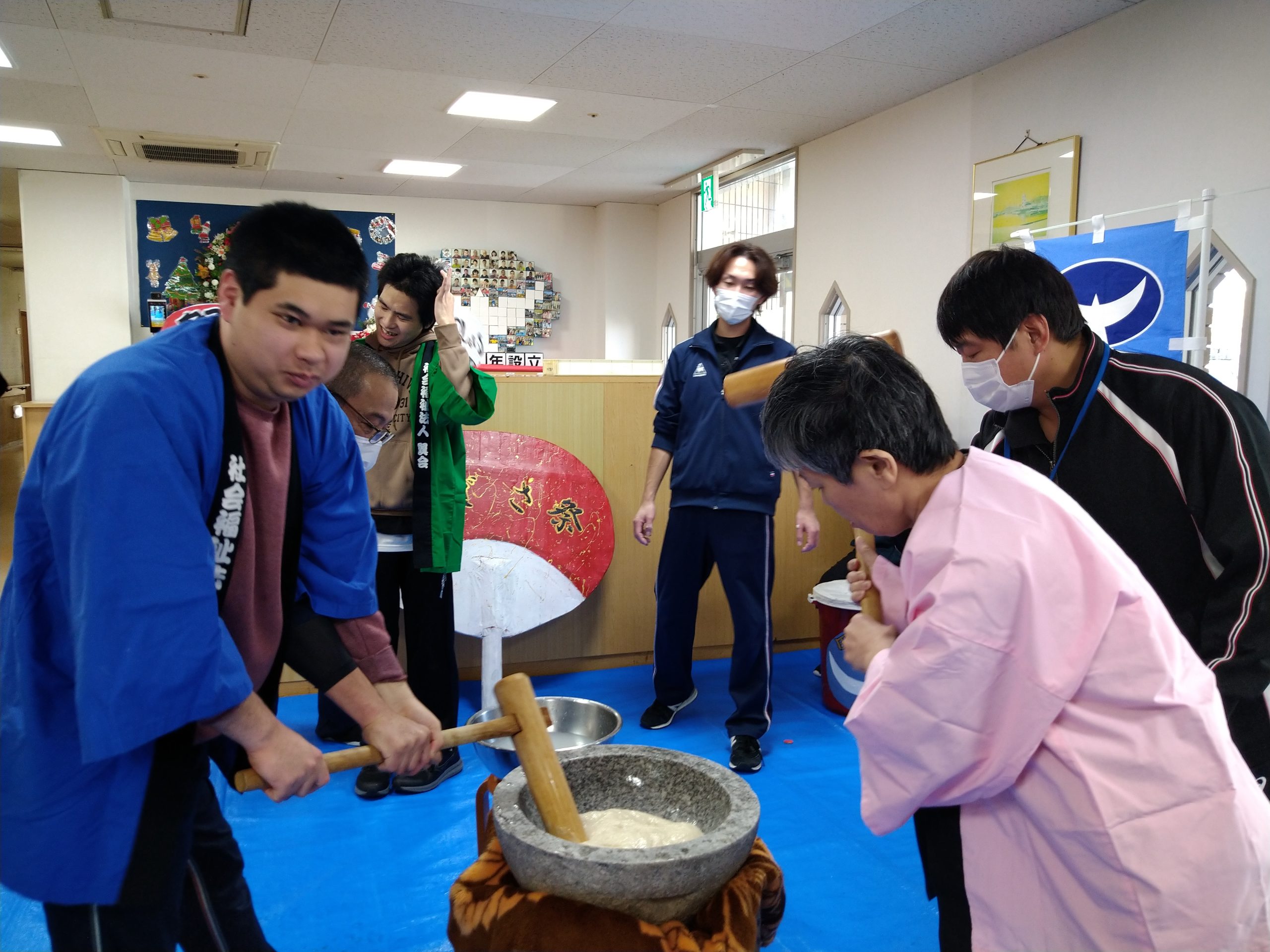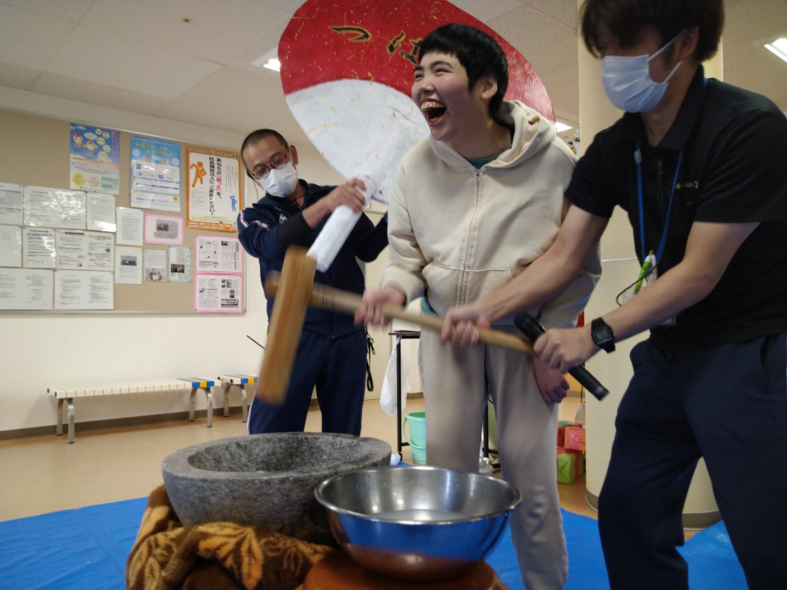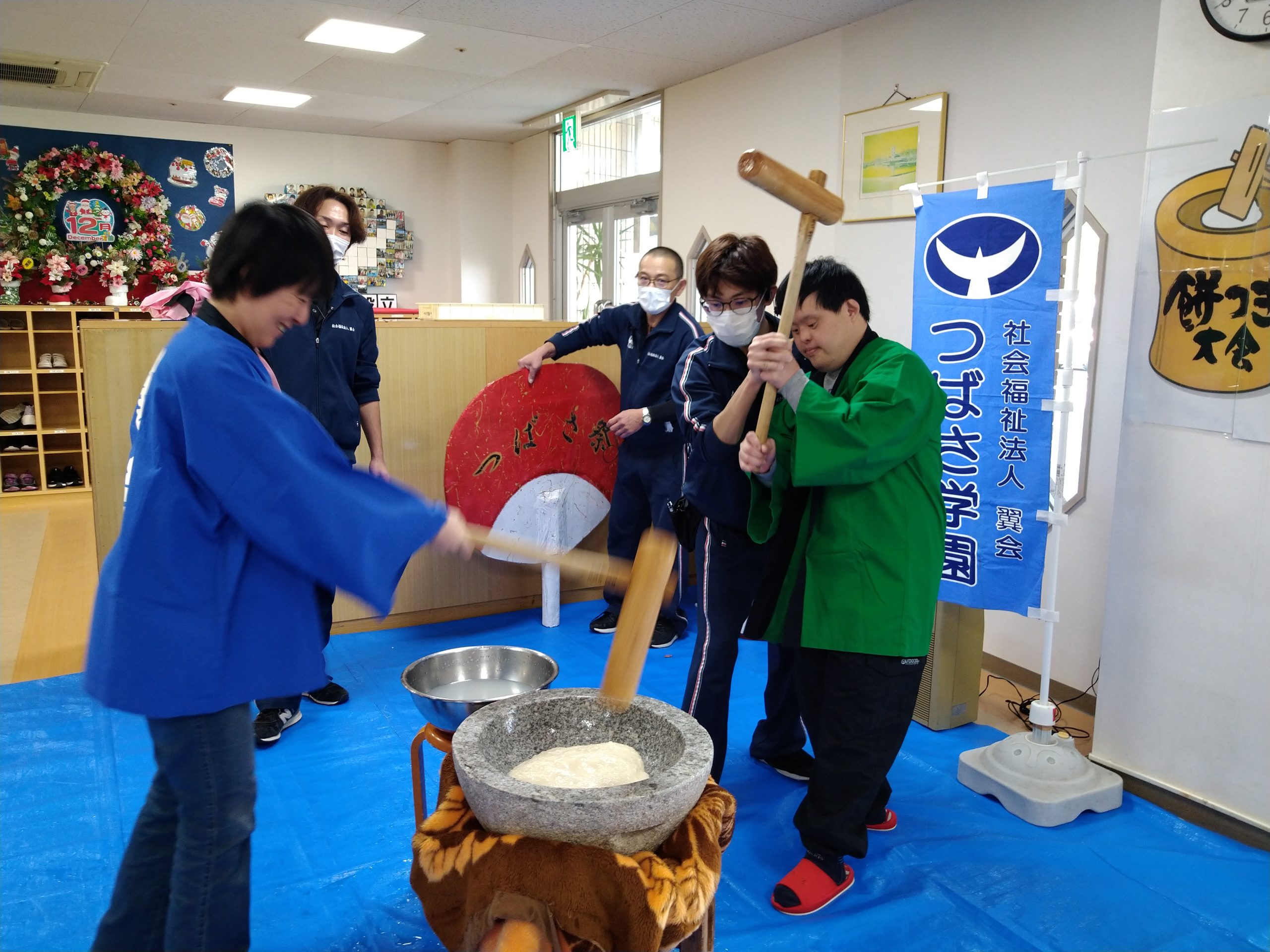 12月7日(土)毎年恒例の餅つき会を開催しました(#^.^#)皆さん大きな声を出しながら力いっぱいにお餅をついて、大盛り上がり♬ついたお餅は厨房よりすぐに調理して頂き、美味しいきな粉餅を頂きました。来年も良い年となりますように( `ー´)ノ