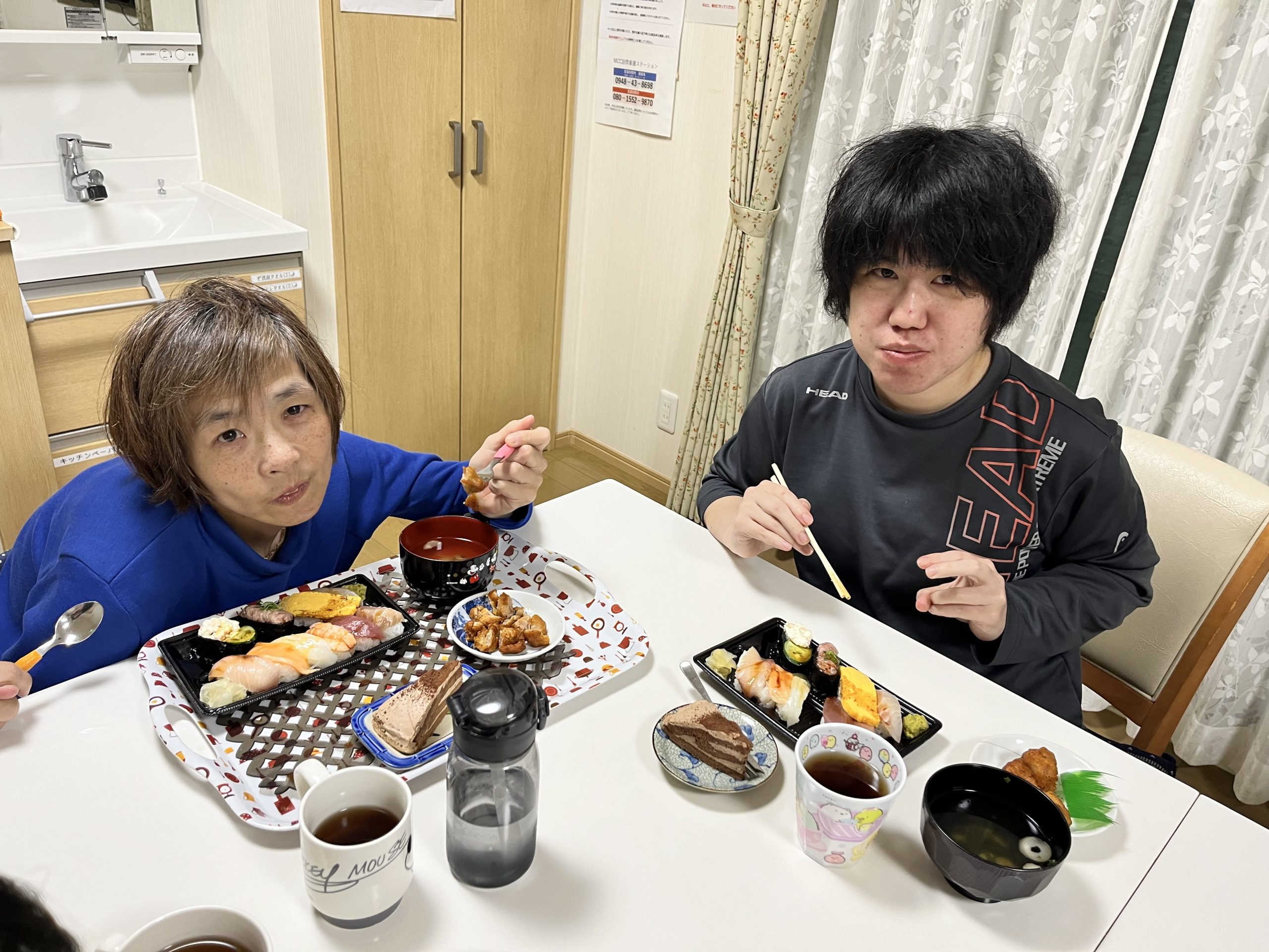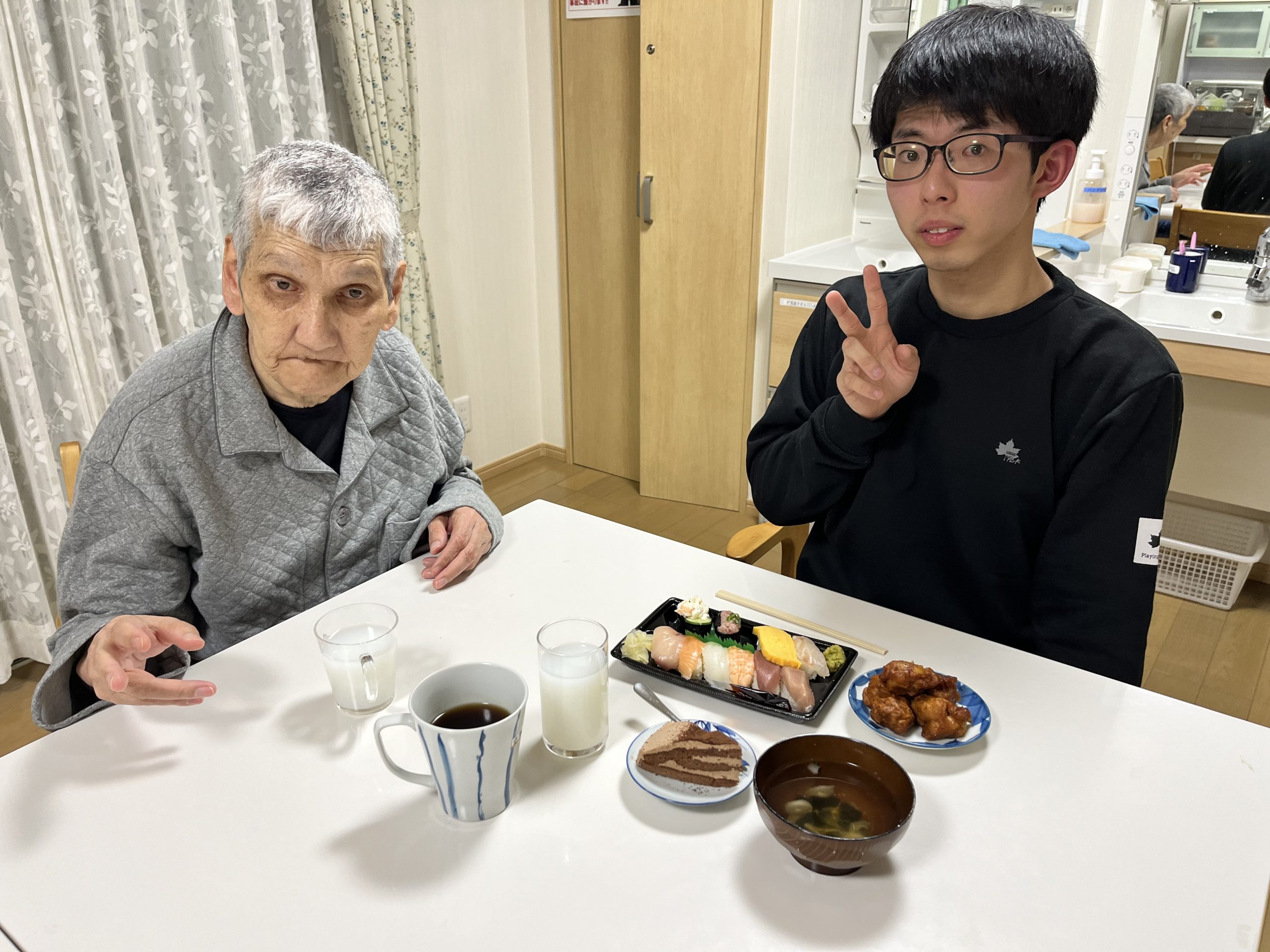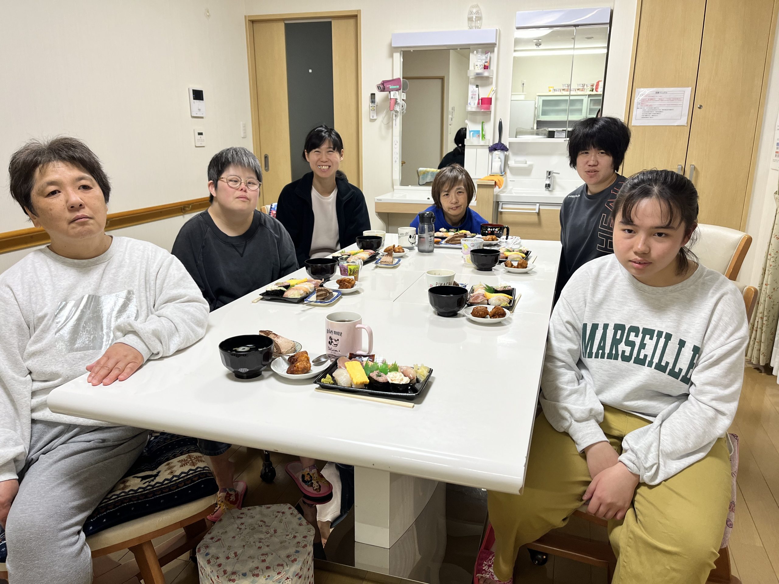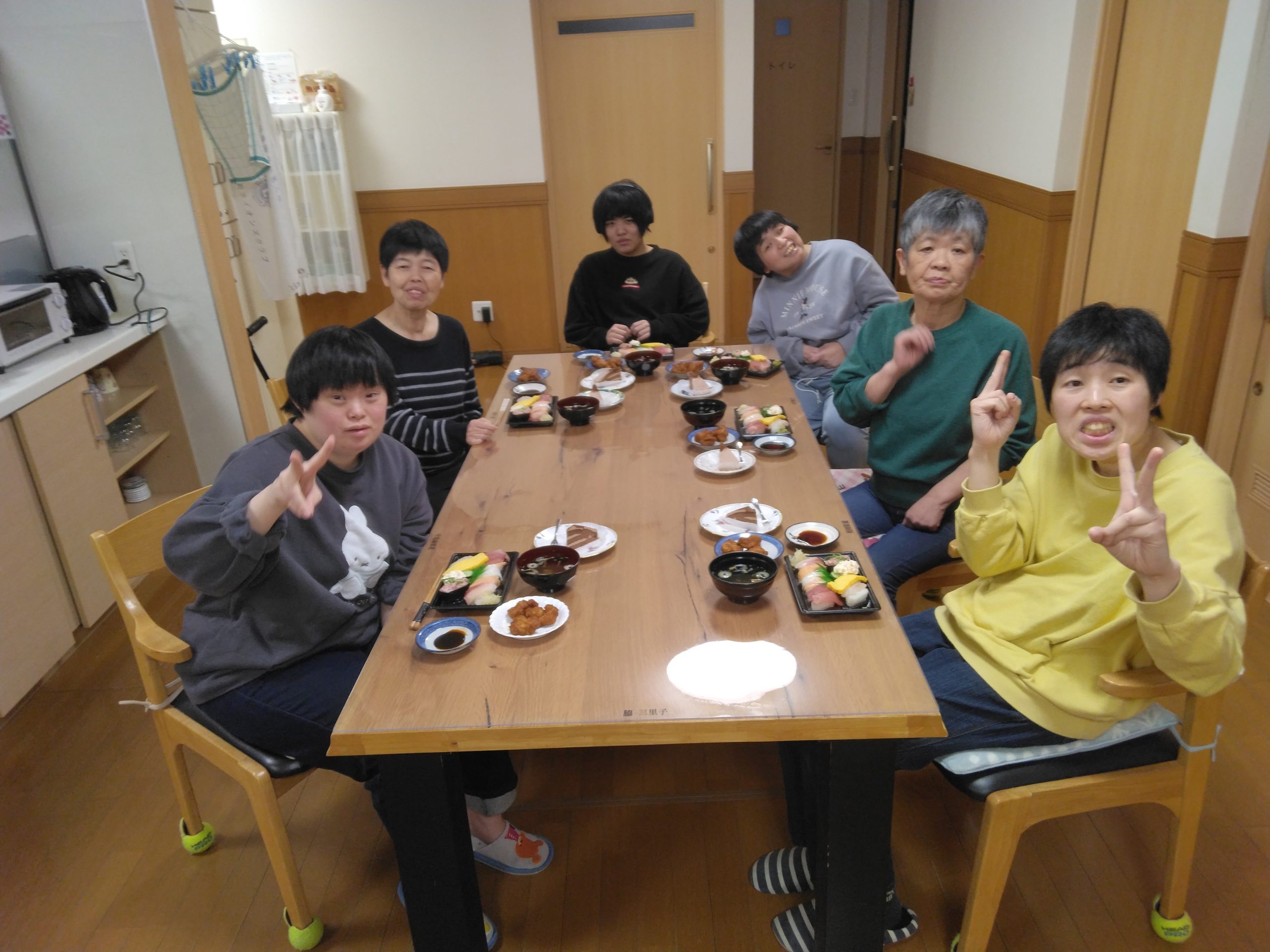 グループホーム グループホーム「寿司パーティー」 2025.04.19 3月は、お寿司のテイクアウトを行いました。マグロにサーモンにイカなど次々と頬張り、あっという間に完食しました!!サイドに唐揚げやケーキまで堪能し、皆さん大変喜ばれていました。 グループホーム「さくらフェスタ」 前の記事 4月 セカンド 誕生会 次の記事