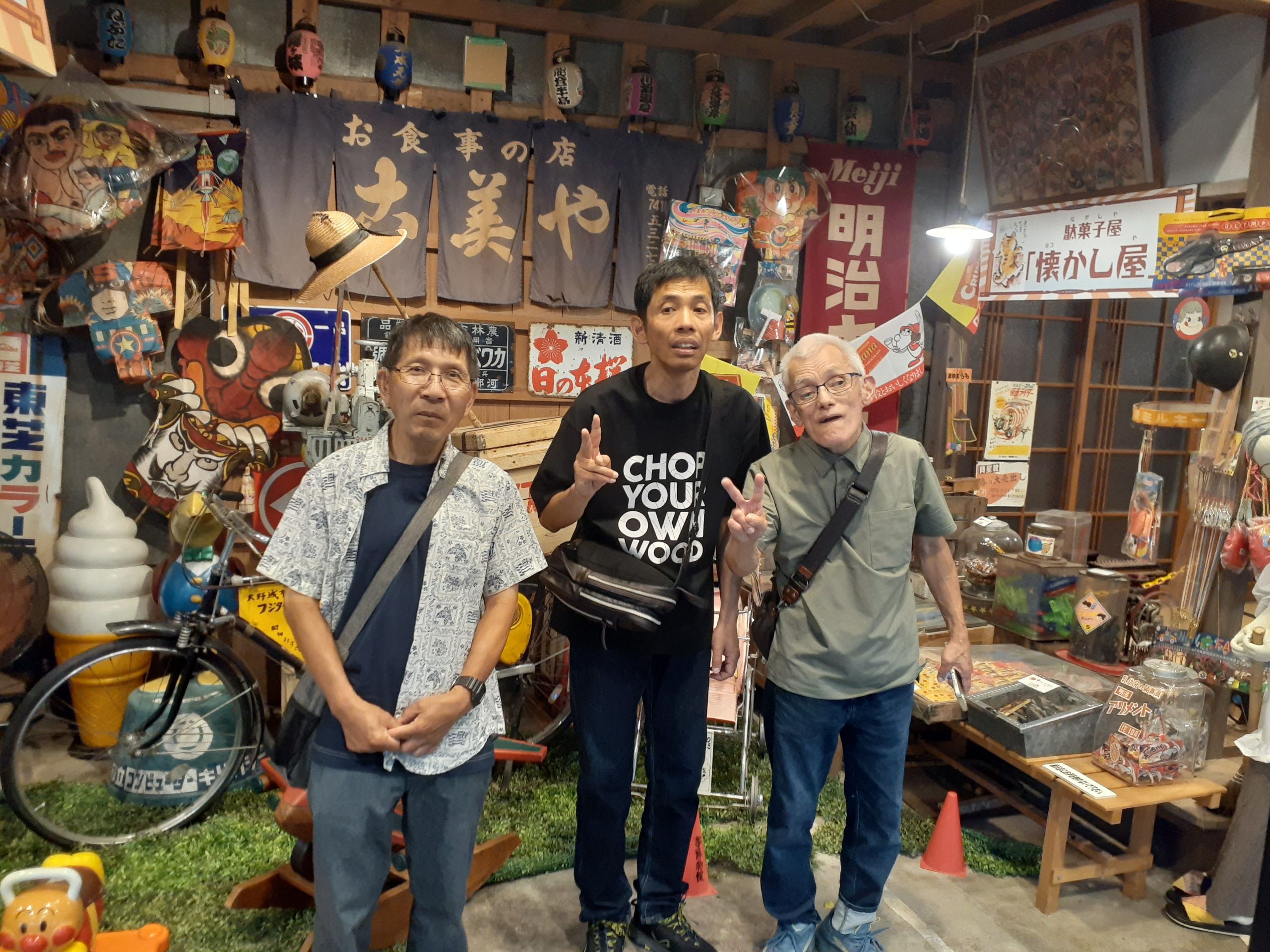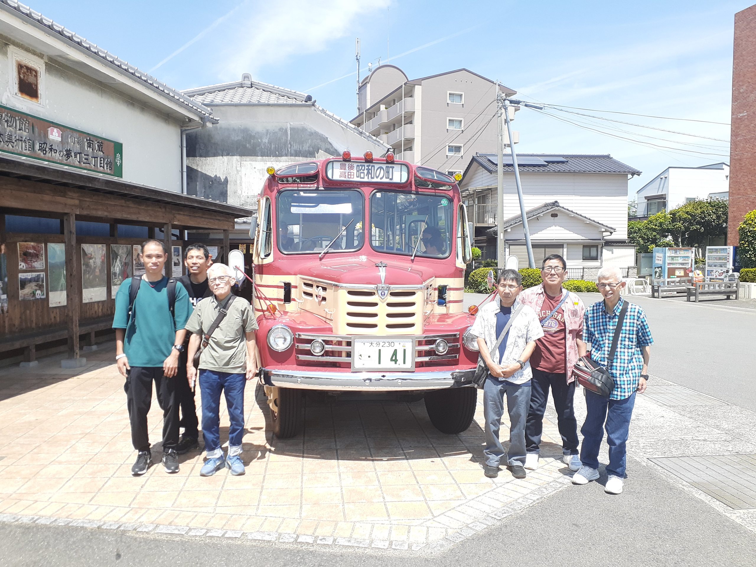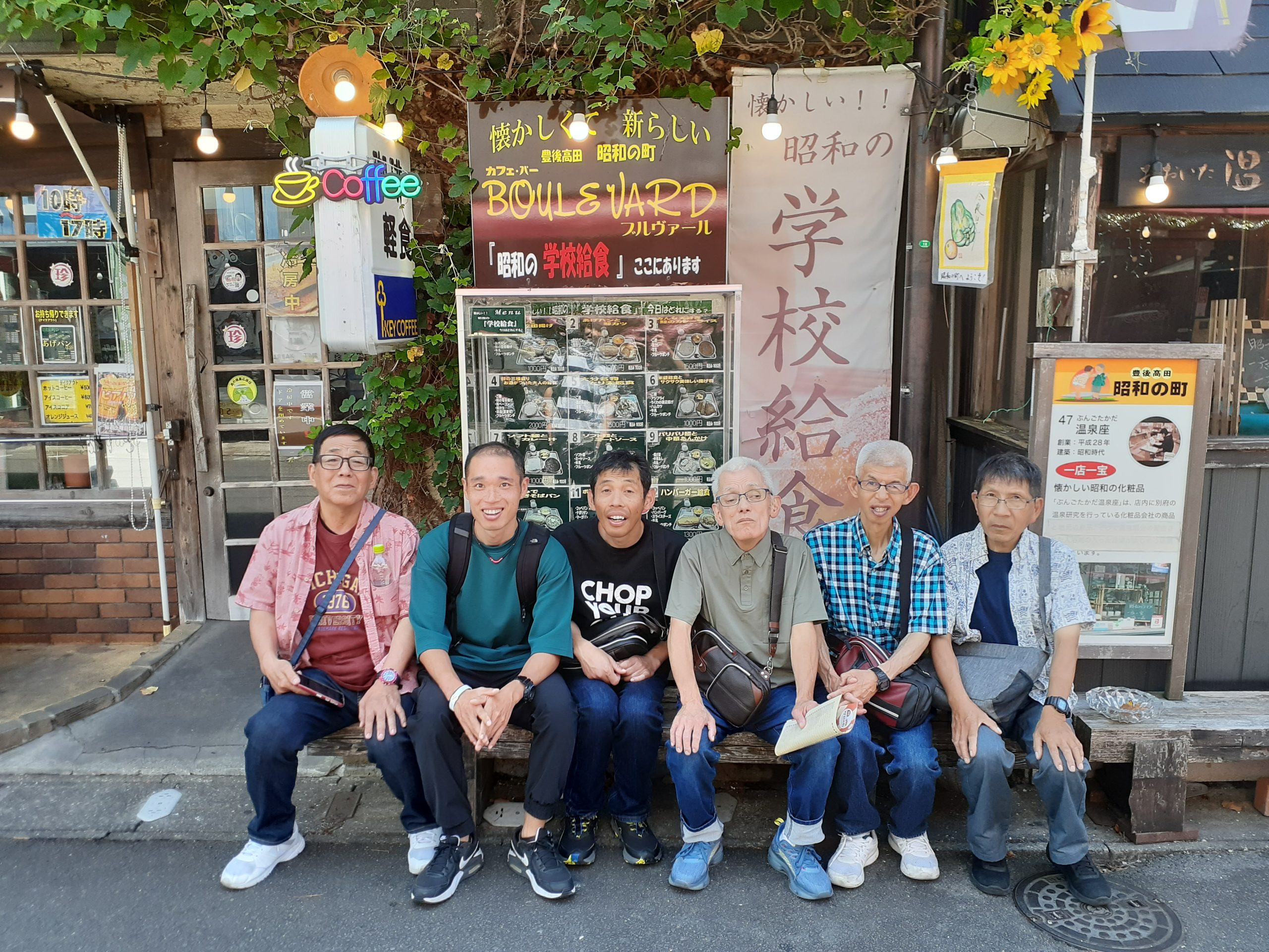 7月5日(土)大分県豊後高田市ある昭和の町にタイムスリップしてきました。そこには昭和30年代の町並みが広がっており、学校や銀行、懐かしい車や遊具がたくさんありました。皆さん幼少期に戻ったかの様に夢中になり、「懐かしぃ~」の連呼で終始大興奮でした。銀行では、昔のお金が展示されていたり、一億円の重さを実際に体験する事が出来ました。また、昼食やおやつも昭和ならではの学校給食や駄菓子を堪能し、あっという間に時間が過ぎました。帰りの車内では皆さんぐっすり休まれており、目を覚ますとそこには令和(現実)の街並みが・・・((*´∀`))ケラケラ