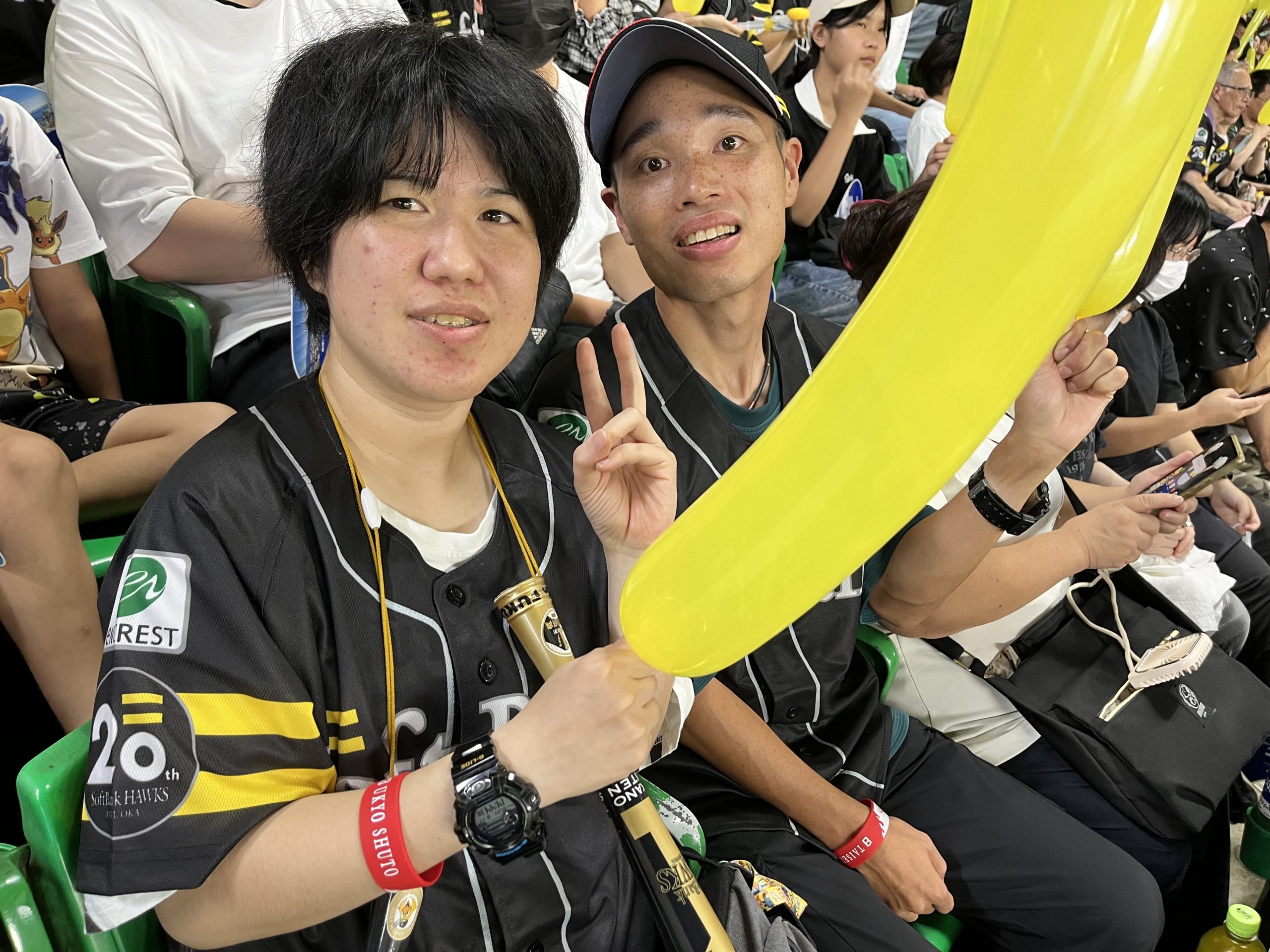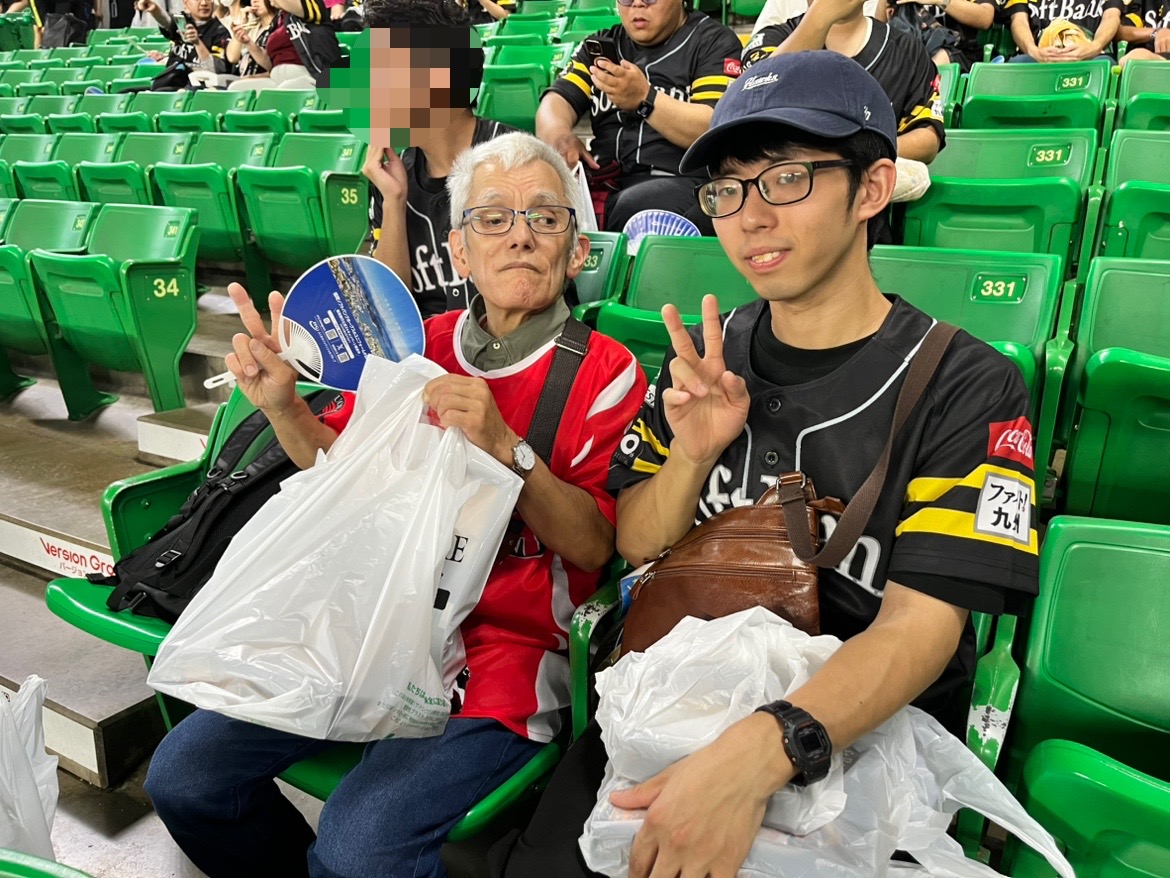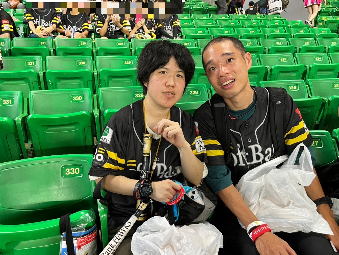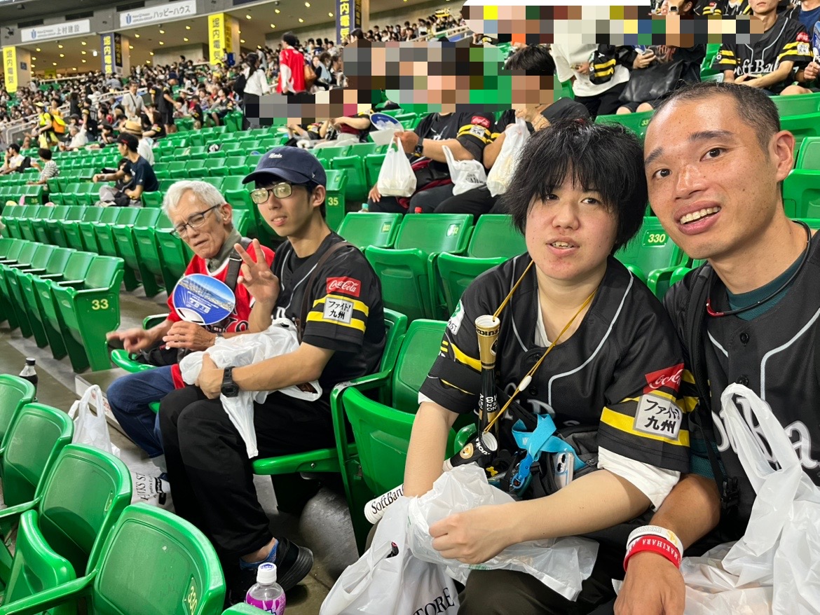 8月17日(日)に福岡ソフトバンクホークス対千葉ロッテマリーンズの試合に招待して頂きました。夏休みという事もあり、多くのキッズファンが声援を送る中、利用者さんも負けないくらい声援を送っていました。試合は、9回表まで試合は動かず、このまま延長戦に入るのではと思われましたが、9回裏のホークスの攻撃で牧原選手のサヨナラタイムリーにて見事勝利しました。最後は、勝利の花火を見る事ができ、とても良い思い出になりました。ご招待して頂いた関係者の皆様誠にありがとうございました♡♡